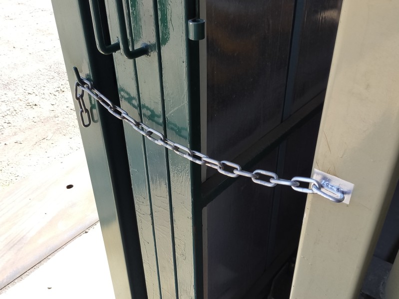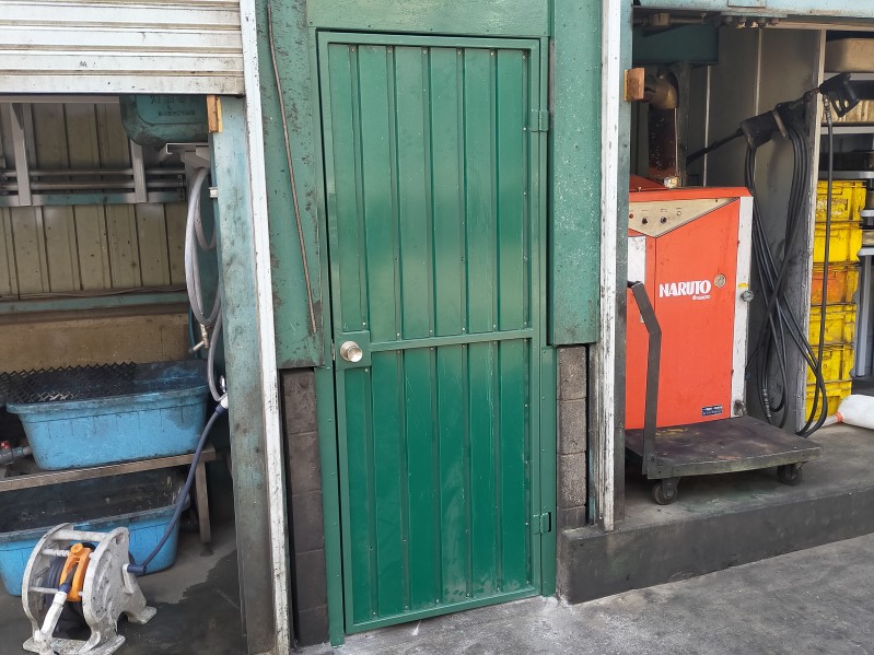油脂庫横にある配電盤があるスペースに扉を制作しました!