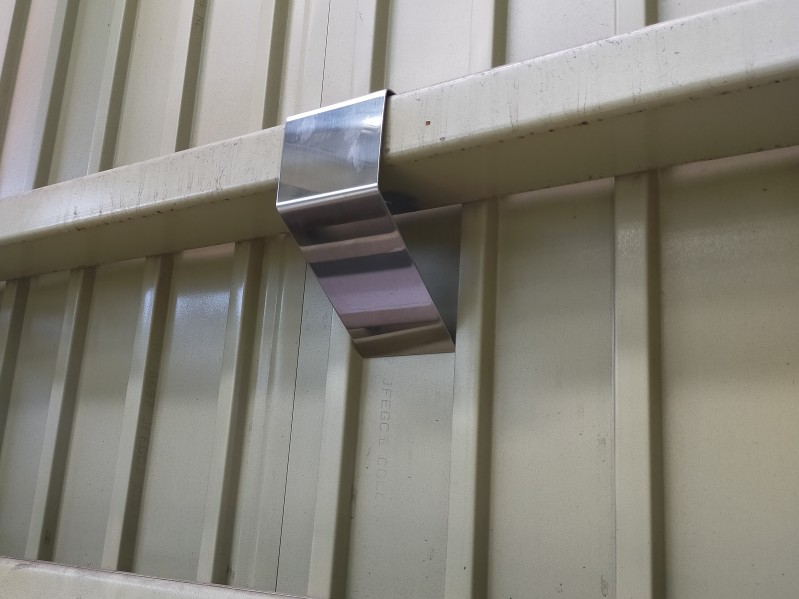 ステンレスの曲げものは穴から落ちてきた水を壁に流すスロープになっています!