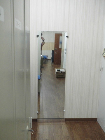 食堂の鏡が落ちてましたので、原田さんが直してくれました。