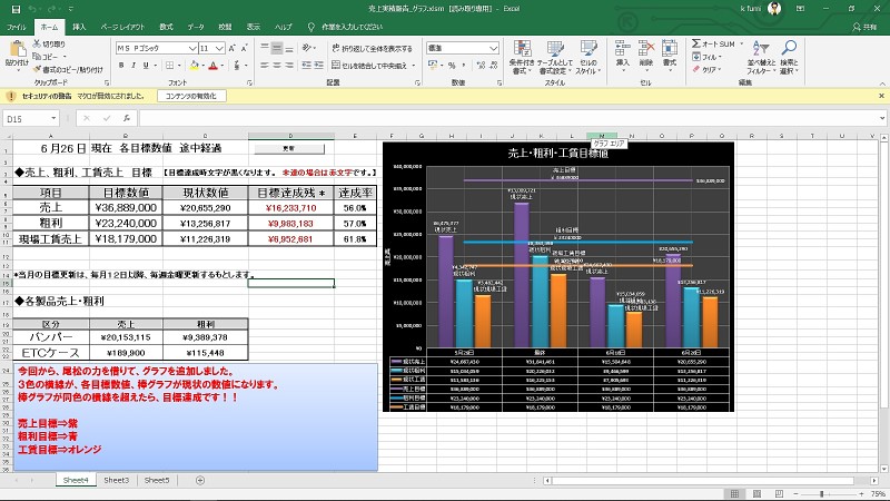 売上報告のエクセルファイルが尾松君の力を借りてバージョンアップしました。