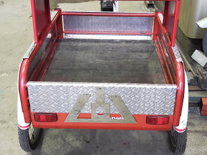 3輪自転車の荷台部分に荷物を乗せると隙間から落ちてしまいます。