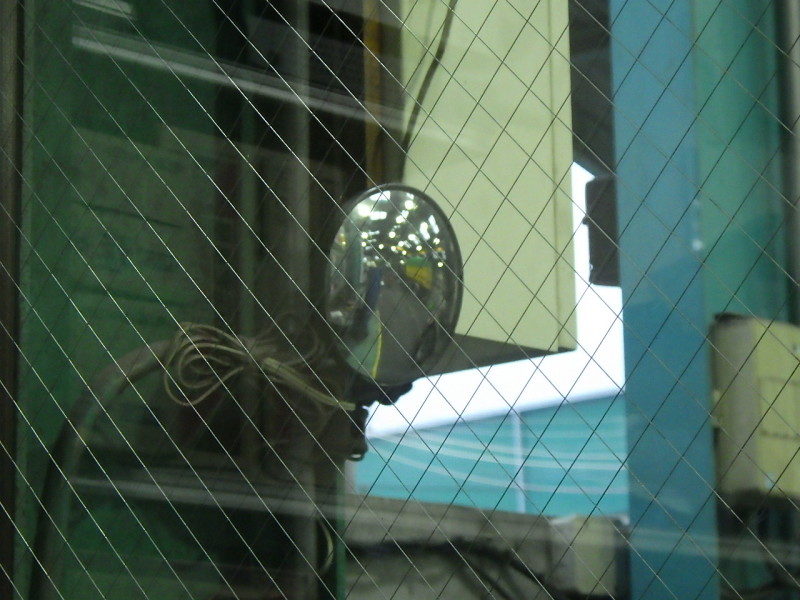 お客様の来客時に私、岸本の席から姿が確認できず、お客様をお待たせしてしまってる時があってはいけないと廃棄処分であったアンダーミラーを扉前が見えるように取り付けてみました。