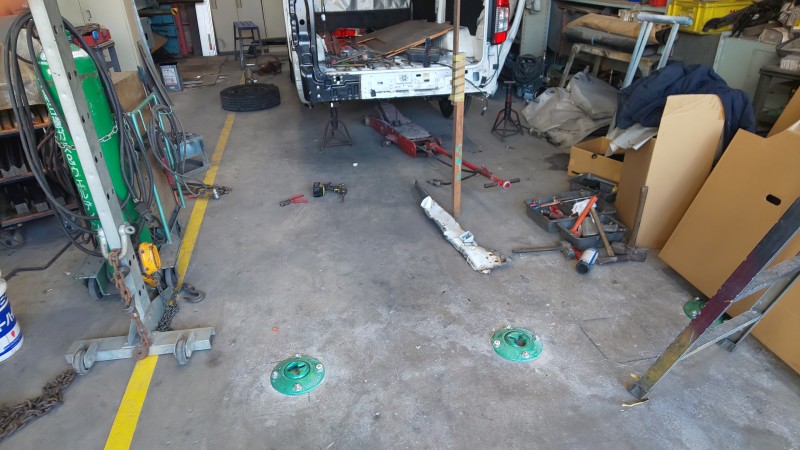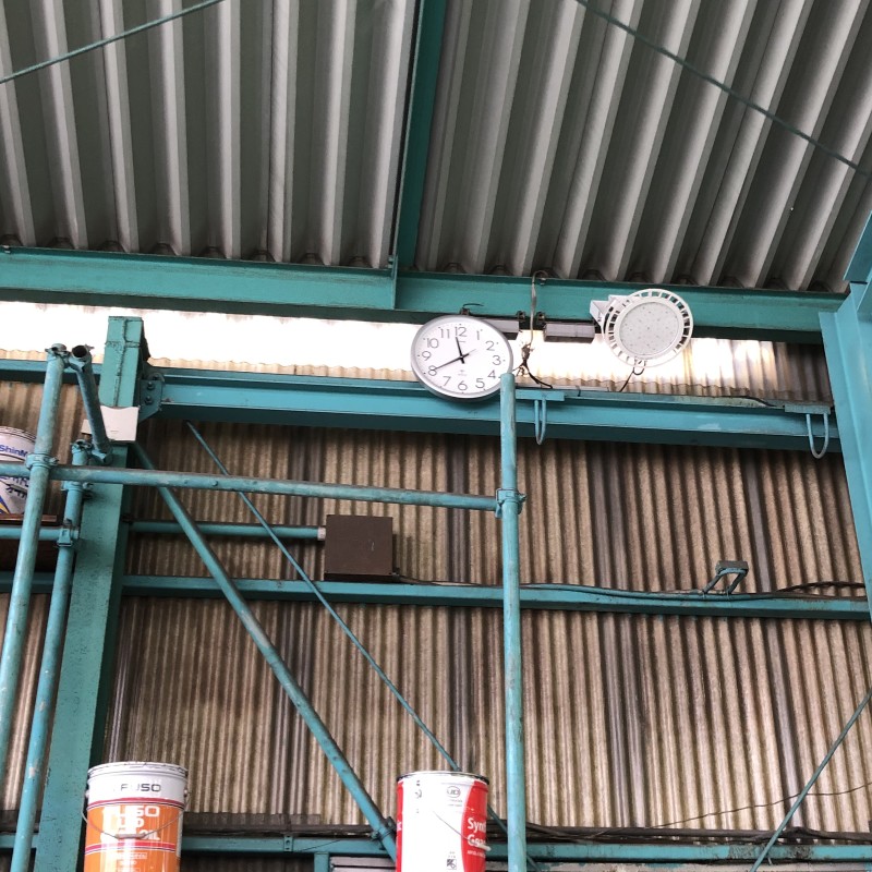 もともとある時計は大型の車両が入ると見えなくなります。作業の工程で時間意識を持つと効率良く仕事を捌ける様になります。