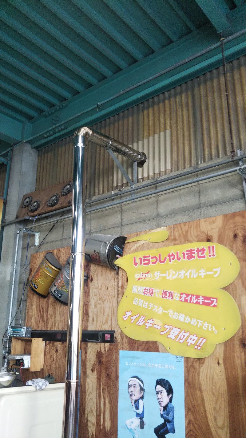 大型の廃油入れにマグネットつけました。。
