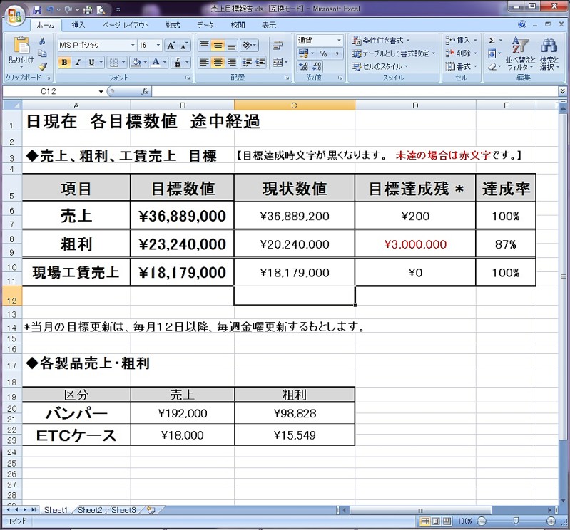 勉強会で、話が出てました売上など目標の途中経過を