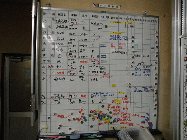 今まで 一枚のボードに 当日と翌日の引き取り納車が記入されて
