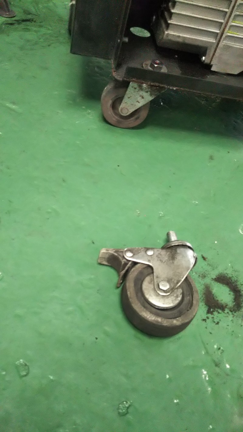 エアコン再生回収機のキャスターが劣化し前に進まなかったので交換しときました。
