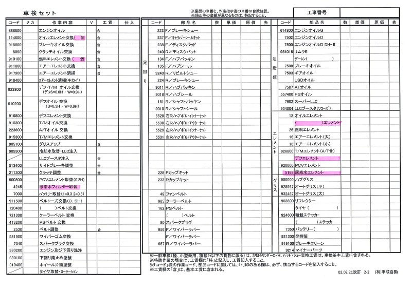 車検の作業明記する車検セットの項目を追加・変更しました!!