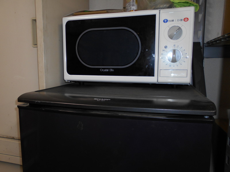 製品ラインの事務所に、ジモティーで買った中古の電子レンジを設置しました。