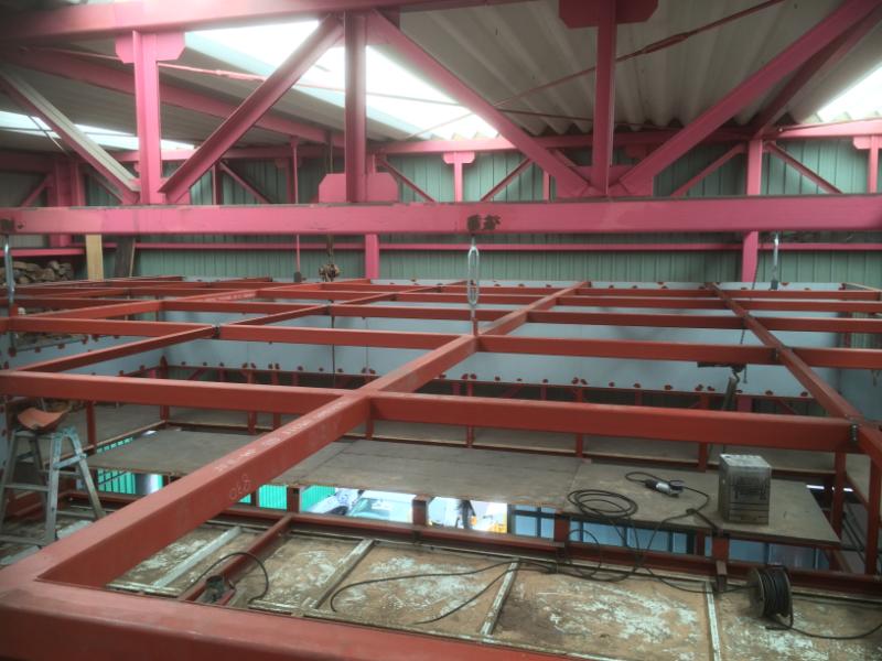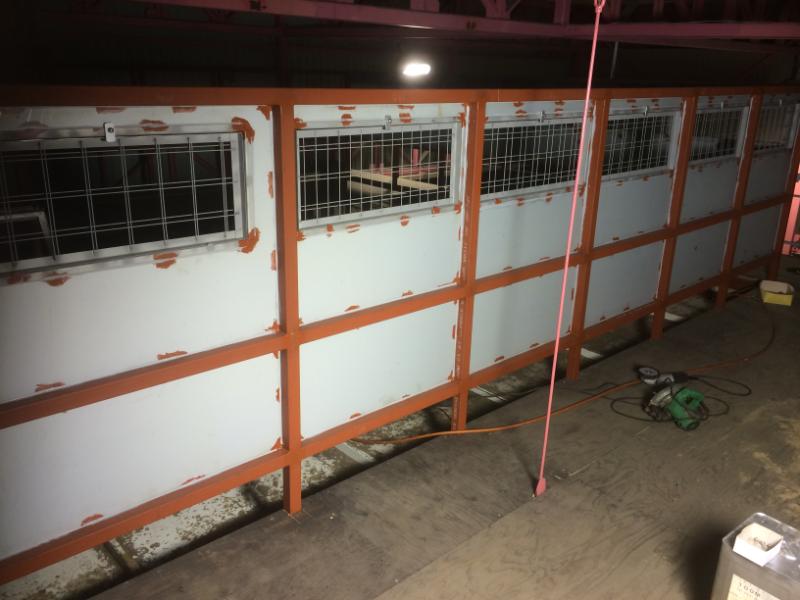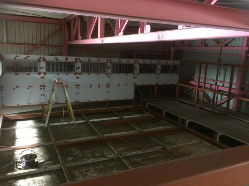 塗装ブースの天井の進み具合です。