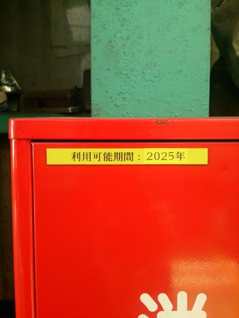検査ラインと油種庫の消火器が期限切れでしたので交換しステッカーも新しくしておきました。
