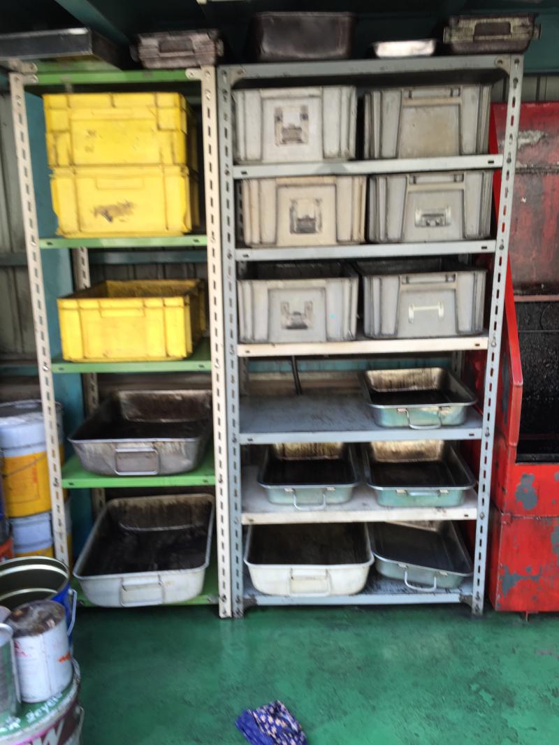 油脂庫の棚と、オイル受けを綺麗にしました。