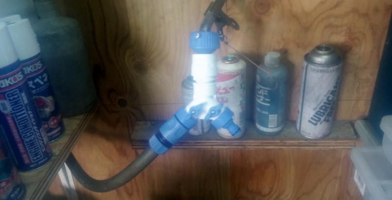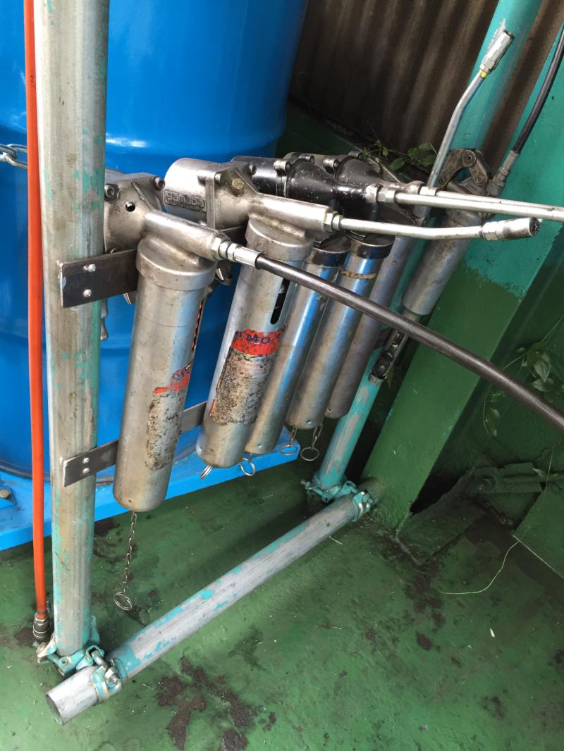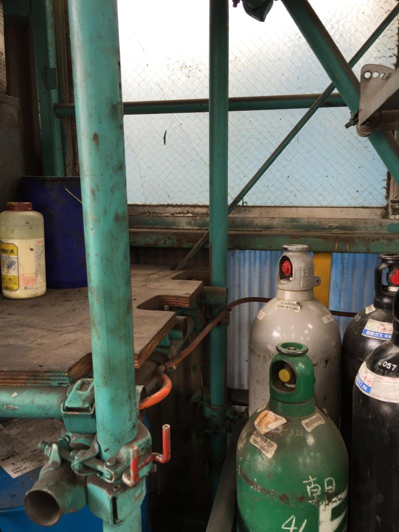 前回の設置場所で、グリスの落下にてアセチレンボンベにグリスが付着するため、前回の場所からグリスガン設置場所を移動しました。
