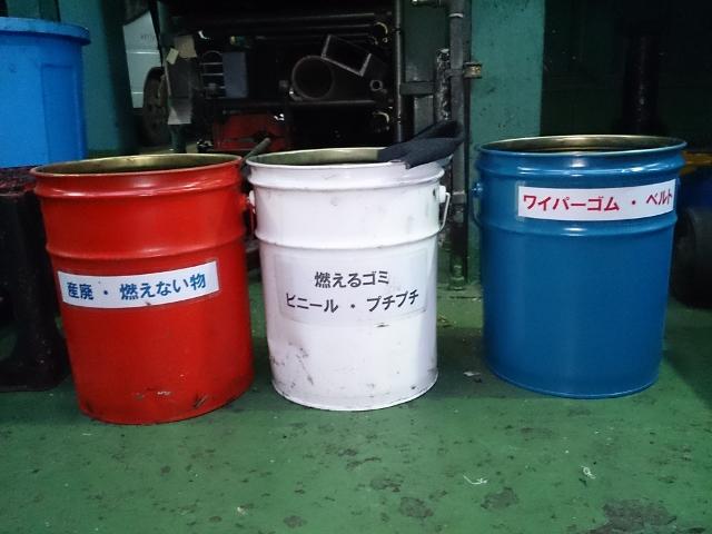 ゴミ分別を解りやすく、また収集・廃棄しやすくするために改めてペール缶に塗装着色して各箇所に配置しました。