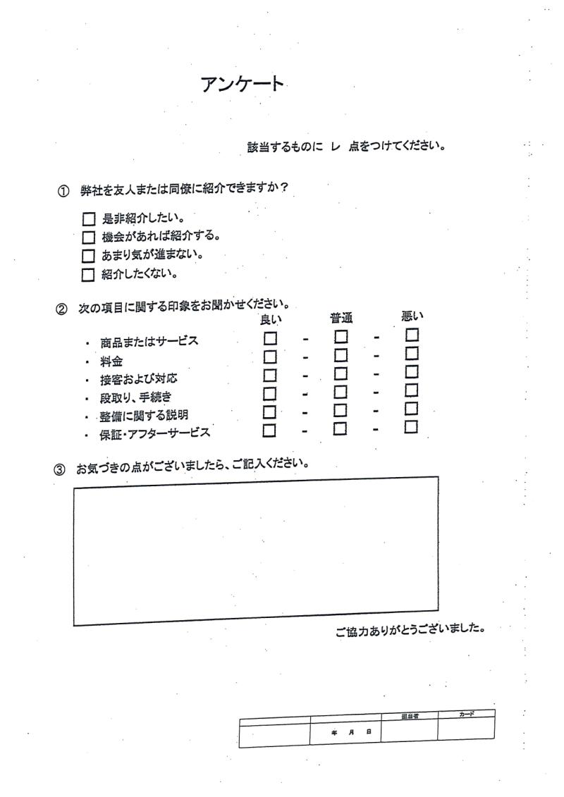 今般、以前よりお客様の声を聴きやすい内容のアンケート用紙になりました。
