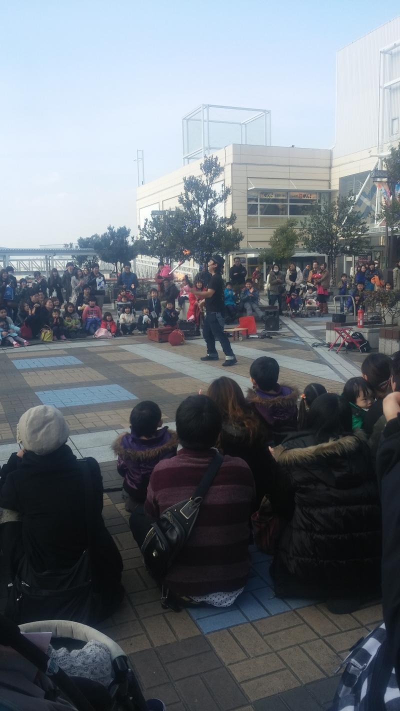 天保山で、大道芸人がパフォーマンスをしているのを見学。