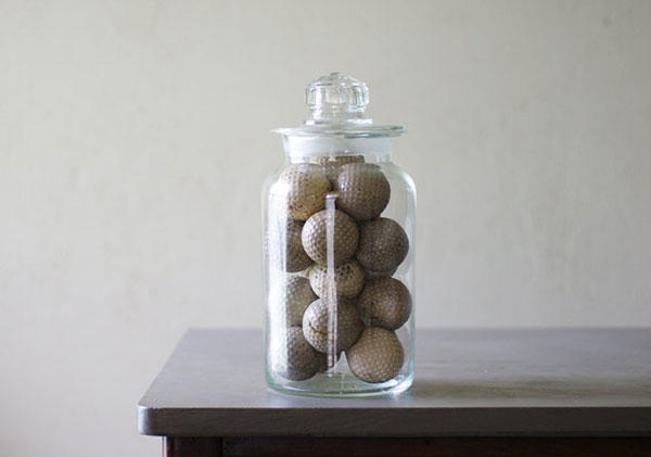 彼は軽く瓶を振り、小石はゴルフボールとゴルフボールのすき間に入り込んでいきました。