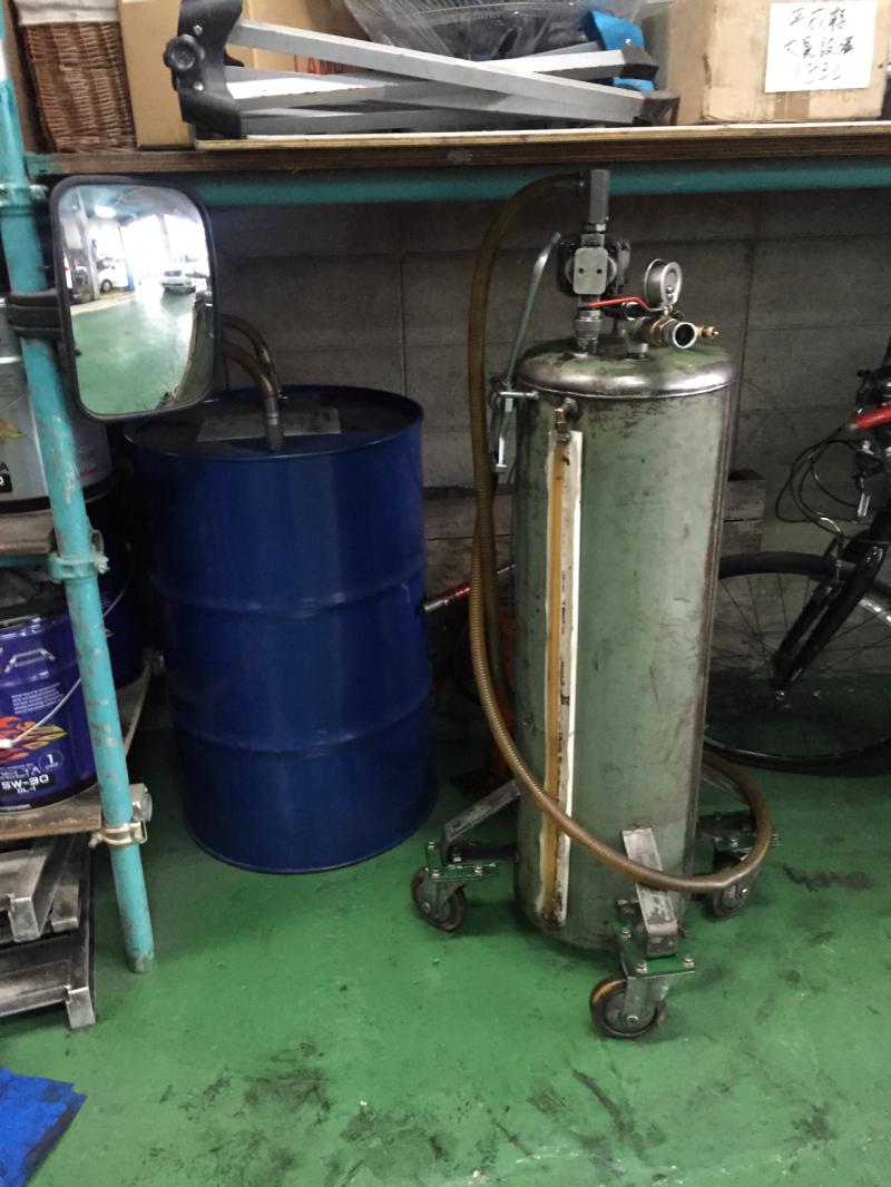 大型ラインにあった古いエアー式ギヤオイル入れを、小型ラインに置きました。