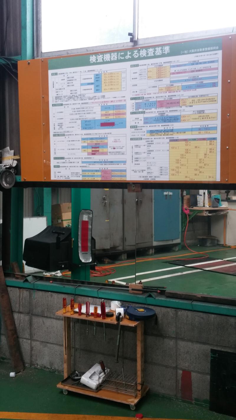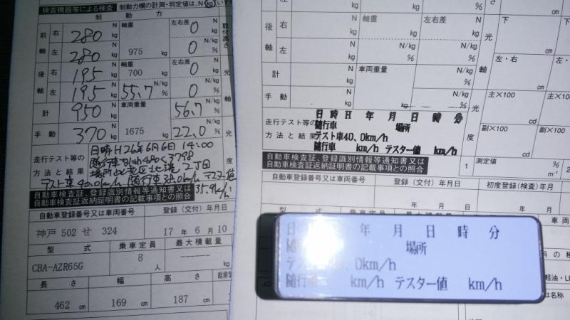 完成検査のブレーキテストでサイドブレーキの制動力を