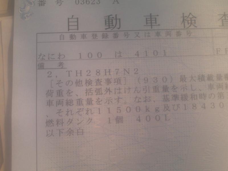 普通に仕事しているトラクターヘッドでも「検査証二枚」は、なかなかないで。