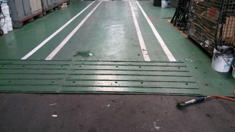 検査ラインのスロープ、タイヤの滑り止めがついててバッテリ等を載せた手押し台車が通りにくい。