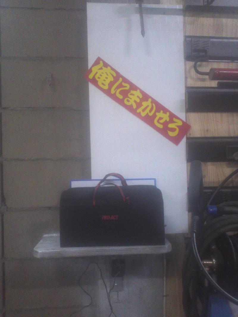 今回のちょボラは、「作業灯」(板金用でキャスター付蛍光灯使用)故障していたのを修理するのでなく、統括が家からもってきた(要らなくて捨てていた)蛍光灯を取り付けて使っていた。