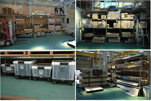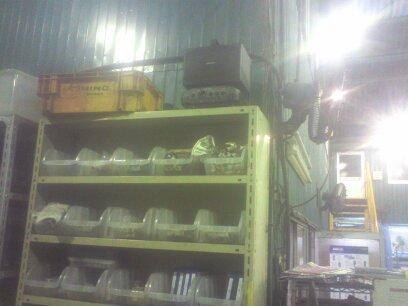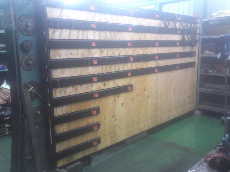 写真は新ラインの二階、可動式バンパーの在庫保管場です。